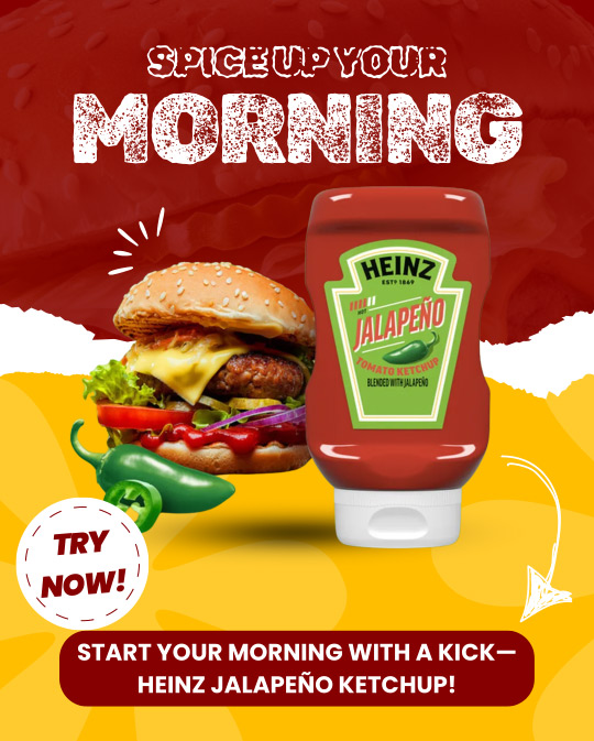 At Heinz, we believe great mornings start with great food—and let’s be honest, we wish breakfast could be a little more exciting. That’s why we’re introducing Heinz Spicy Ketchup. It’s our bold twist on your favorite classics, infused with the fiery flavor of jalapenos, to make your everyday breakfast memorable.